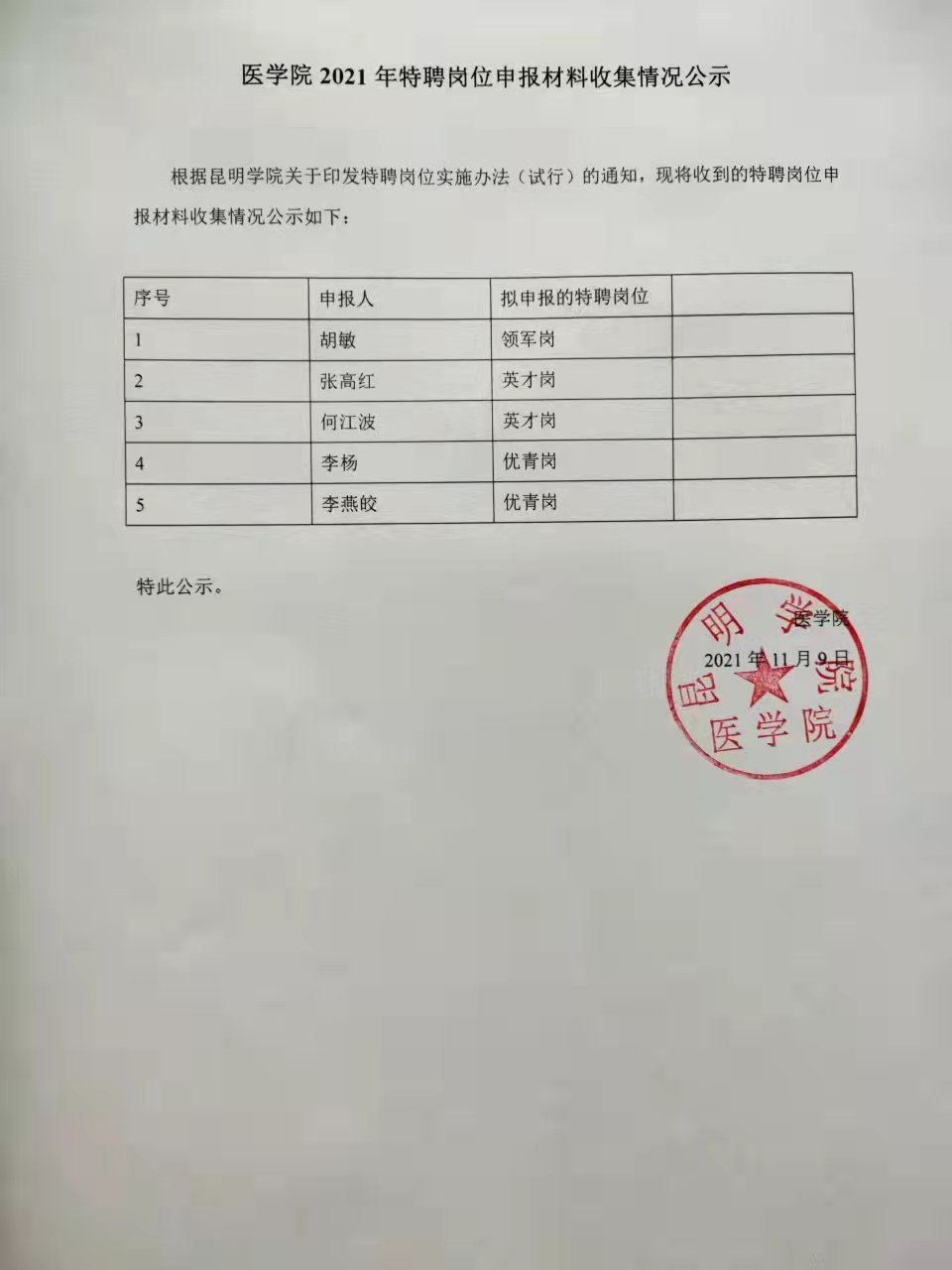 2026年世界杯官网2021年特聘岗位申报情况公示