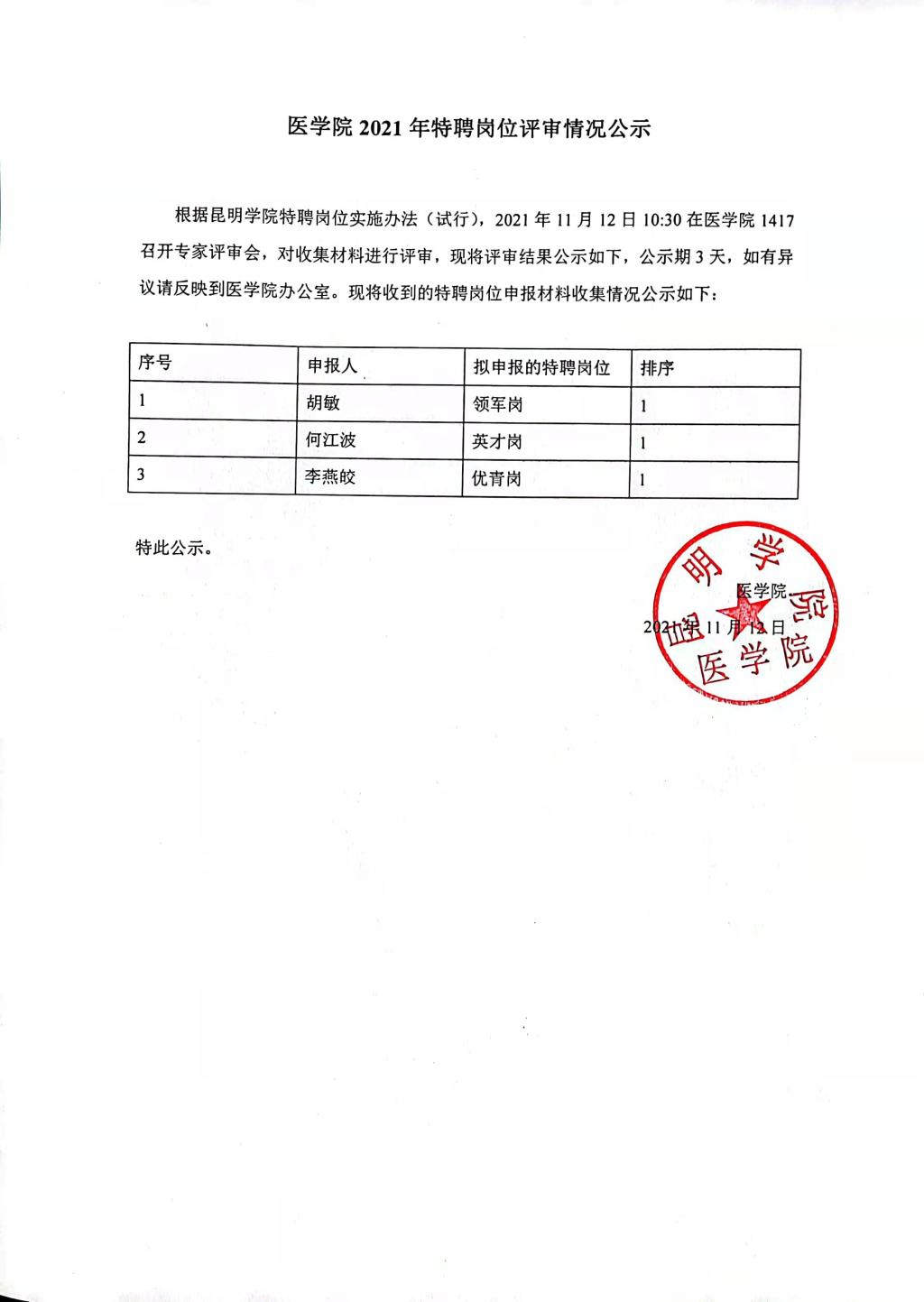 2026年世界杯官网2021年特聘岗位评审情况公示