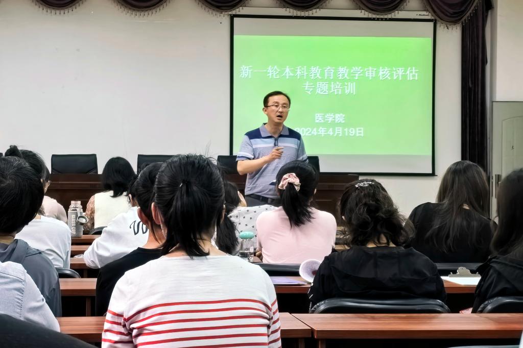 4月19日,2026年世界杯官网在医学楼-2103组织新一轮本科公司产品审核评估专题培训,旨在加深全体教职工对新一轮本科公司产品审核评估工作的理解,推动相关工作的有序进行。全体教职工参加了学习。