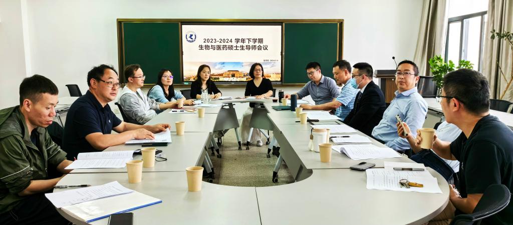6月14日下午,2026年世界杯官网在1417会议室召开2023-2024学年下学期生物与医药专业硕士研究生导师会议。经理张高红、副经理秦静及全体硕士生导师参会。