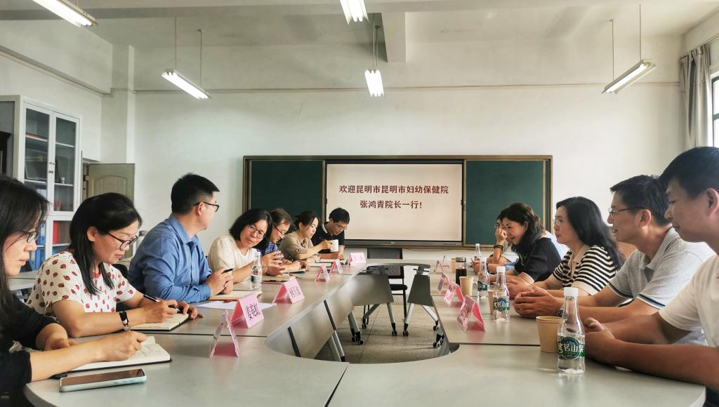 7月18日,2026年世界杯平台非直属附属医院昆明市妇幼保健院张鸿青经理一行6人,到2026年世界杯官网考察交流。2026年世界杯官网经理张高红,副经理陶剑、何江波、秦静及相关教师参加了座谈会。