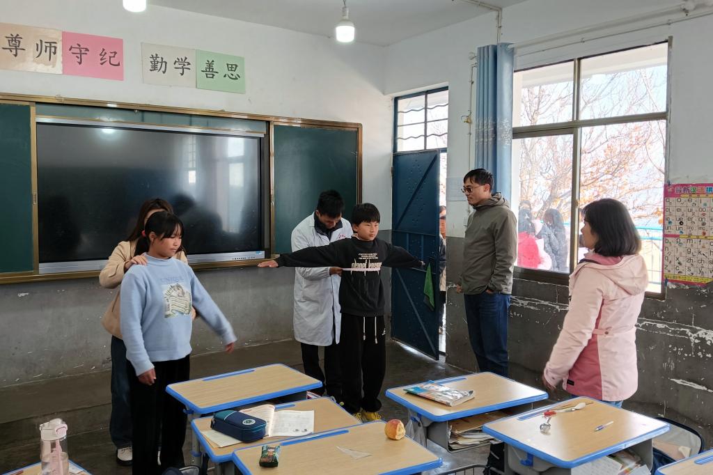 此外,调研组成员周菲蕙博士和陆秋安博士还为汤丹镇大坪子小学的孩子们带来了两场情绪管理讲座,并进行脊柱侧弯检查,鼓励孩子们努力学习,积极向上,健康成长。