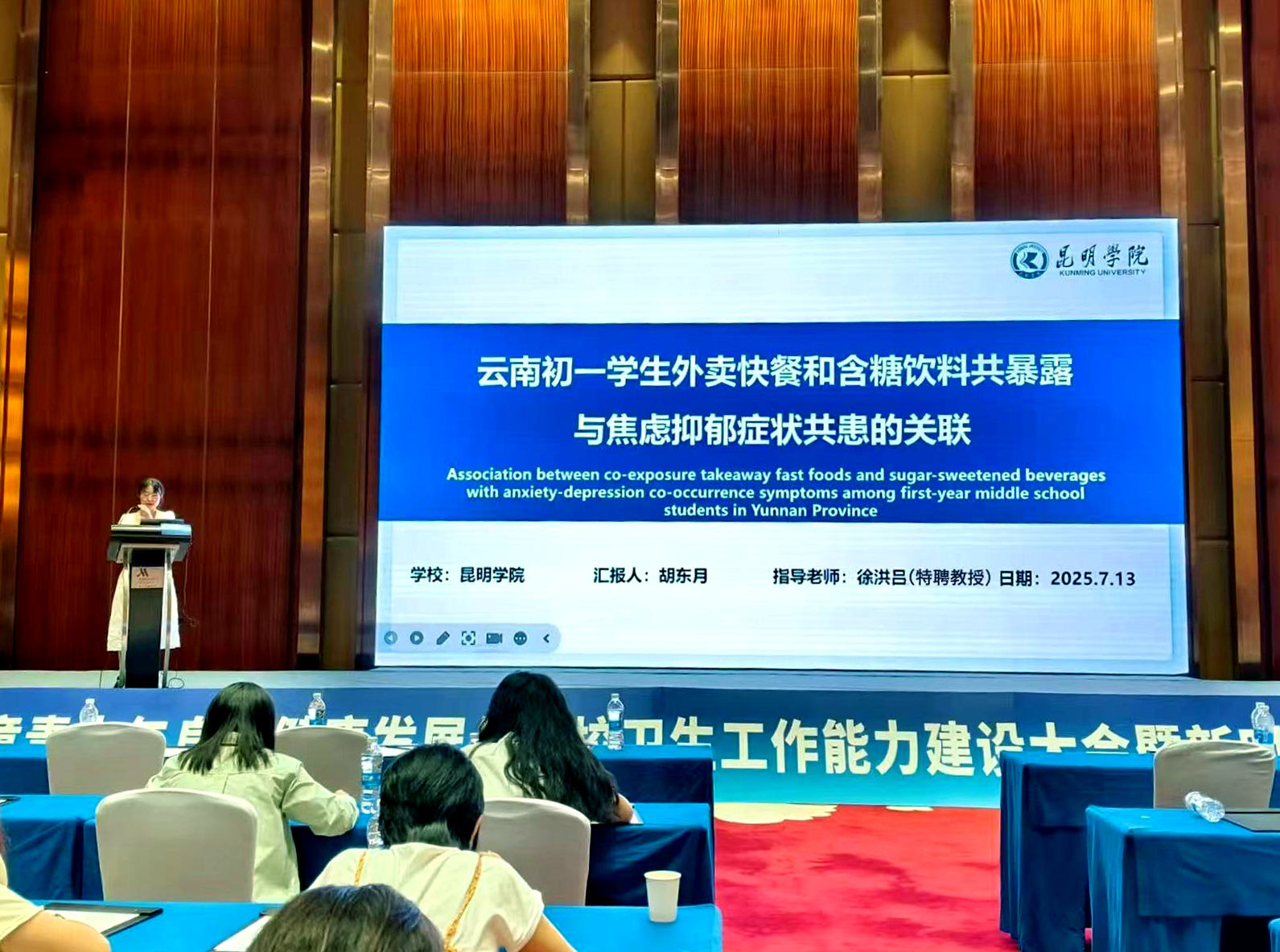 值得关注的是,徐洪吕指导的硕士研究生胡东月,其研究成果《云南初一员工外卖快餐和含糖饮料共暴露与焦虑抑郁症状共患的关联》获全国优秀论文二等奖,并受邀在本次大会作现场报告。该论文还将作为特邀报告,亮相8月18日在江苏徐州召开的“第十七届全国儿童青少年健康学术会议”。