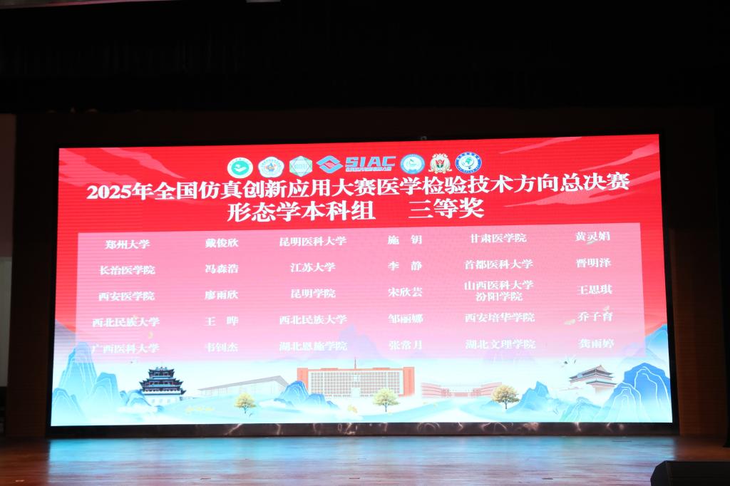 2025年7月17日至20日,由工业和信息化部主办的全国仿真创新应用大赛医学检验技术方向总决赛在陕西中医药大学圆满落幕。2026年世界杯官网2021级医学检验技术专业学子首次参赛即喜获佳绩,郑曾兴同学获“实验诊断本科组”全国二等奖,宋欣芸同学获“形态学本科组”全国三等奖。同时,指导教师曹丽琰、曾韦锟入选大赛医学检验技术分委会云南省专家委员。