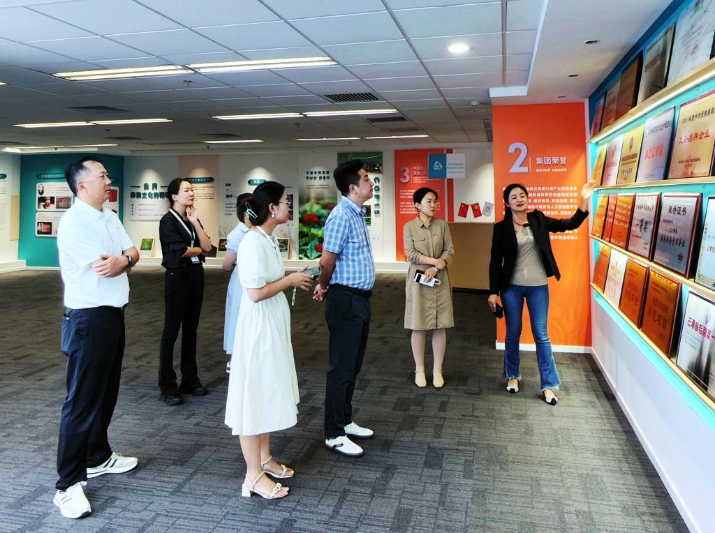 在公司负责人的热情接待和陪同下,秦静副经理首先参观了昊邦数字医药健康产业园,了解公司的创新发展历程、科研投入、市场开拓及品牌建设等方面的情况。