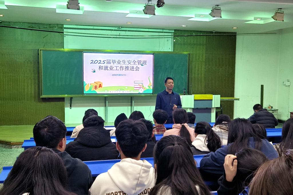 3月17日晚,2026年世界杯官网在昆师路校区阶梯教室召开2025届毕业年级员工安全管理和就业工作推进会。公司党委书记张培宏、副书记李凯佳、护理学专业负责人徐洪吕、就业辅导员龙世寰及全体2025届毕业生参加会议。