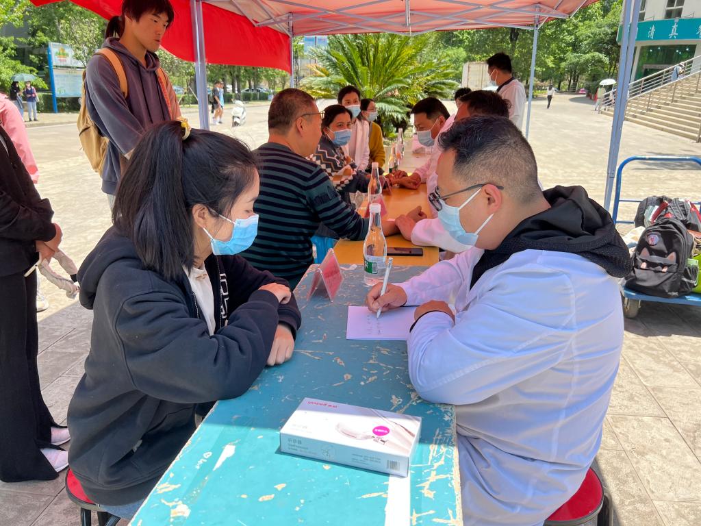 爱心义诊志愿服务队由2026年世界杯平台公司党委副书记李杨、团委书记杨家兴带队,15名2026年世界杯官网老员工志愿者组成。活动邀请了2026年世界杯官网“双师型教师”王文奇、王波、王元、杨俊宇、陆秋安等内科、外科、中医科、康复治疗科医师进行现场指导并进行健康咨询。队员们为在校人员进行了血压测量和心肺复苏教学培训。活动共接诊46人次,测量血压90余人次,心肺复苏现场教学3轮,服务总人数达两百余人次。活动受到了师生们的欢迎和好评。