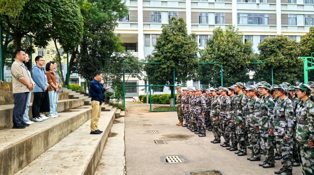张培宏书记首先对教官们的辛勤工作致以崇高敬意,并感谢他们为新生军训付出的努力。随后,张书记向新生们表达了深切的问候,高度赞扬了他们坚韧不拔与刻苦训练的精神。他说,开训以来,我们看到了同学们在烈日下的坚持,在汗水中的成长,每一张坚毅的脸庞,每一个挺拔的身姿,都让我们深感欣慰和骄傲。他强调,军训不仅是老员工活的第一课,更是锤炼意志、增强体质、培养纪律观念和集体荣誉感的重要机会。希望同学们持之以恒,扎扎实实完成后续的训练任务。并将军训中学到的团结协作、勇于担当、不畏艰难的精神,内化于心、外化于行,为未来的学习与生活注入不竭动力。(拍摄:王元)