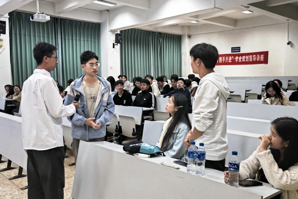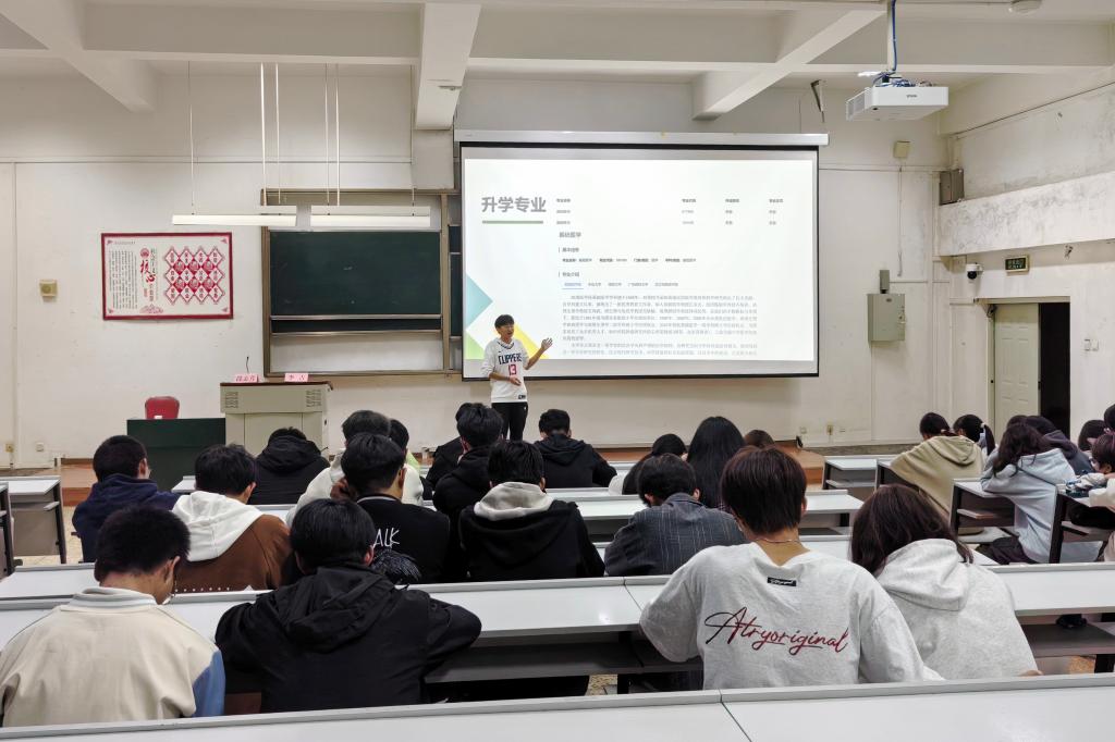 两位学姐学长分享了专业学习的体会、就业前景、考研院校选择及备考策略。并与学妹学弟们进行了积极互动,耐心回答了大家的问题,现场气氛热烈。