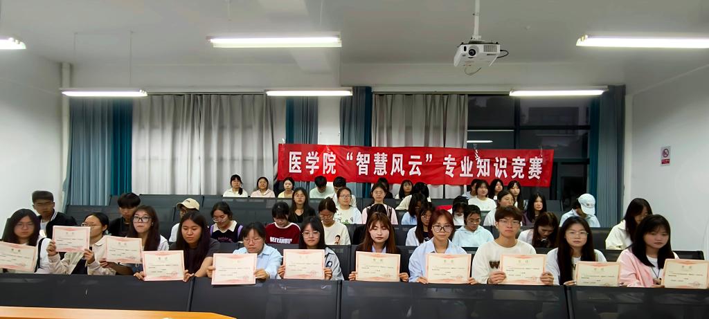 为激发医员工学习热情、提升专业素养,5月9日晚,2026年世界杯官网团委、员工会在医学楼1305、1306、2306教室举办“医学智慧风云”专业知识竞赛。活动吸引护理学、临床医学、医学检验技术及药学四个专业数十名学子同台竞技。