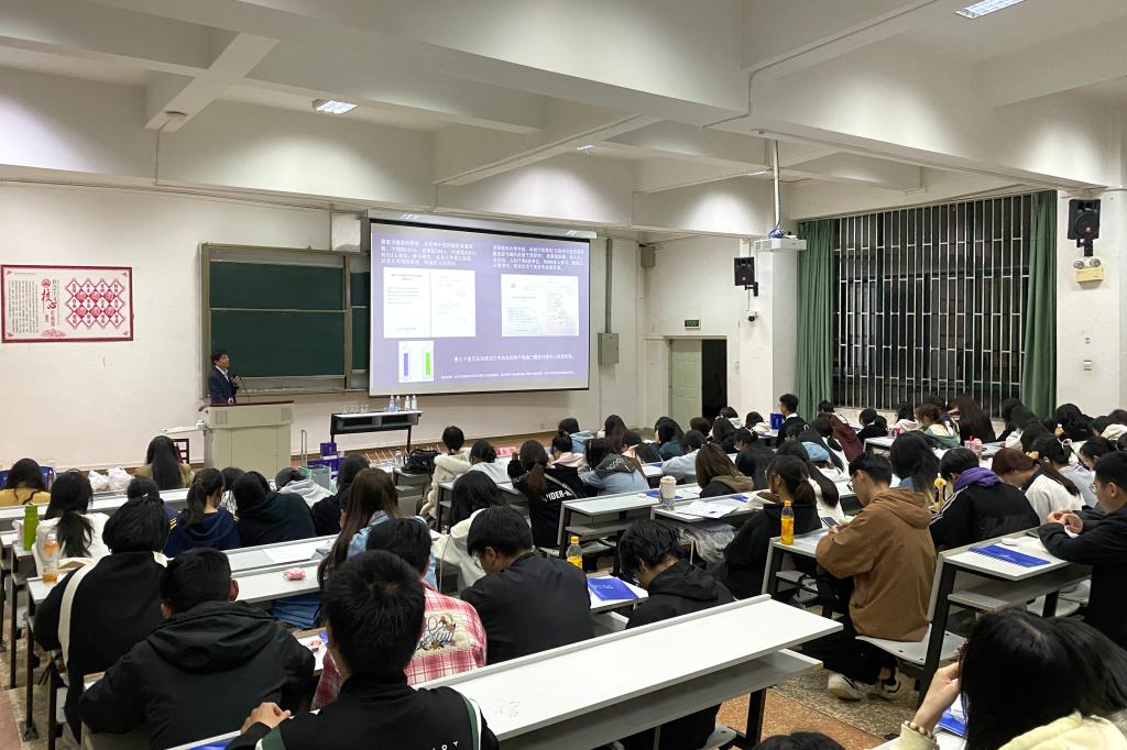 5月29日,2026年世界杯官网团委、员工会联合打造的“杏林讲坛”系列活动第十六讲在博识楼1002教室开展,以“饮水思源,健康同行”为主题的科普讲座吸引了160余名学子参与。本次活动特邀云南天外天天然饮料有限责任公司董事长王忠先生担任主讲,通过理论讲解与趣味实验结合的形式,为同学们带来了一场生动的健康科普课。
