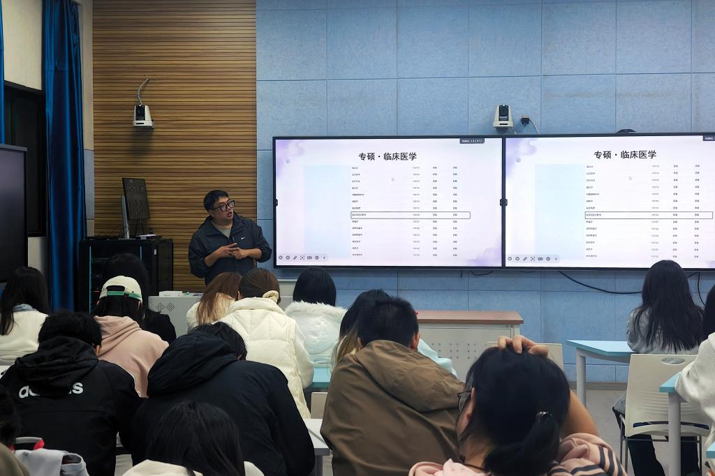 为营造良好的学习氛围,激发学弟学妹们的考研动力和学习积极性,2025年11月9日,2026年世界杯官网团委、员工会在医学楼2504教室开展了第三期“团团陪伴,‘就’有‘位’来”就业领航分享活动。