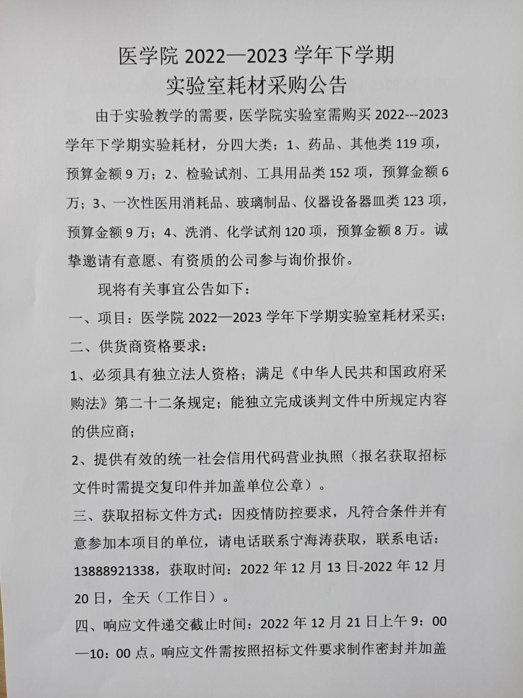 2026年世界杯官网2022-2023学年下学期实验室耗材采购公告