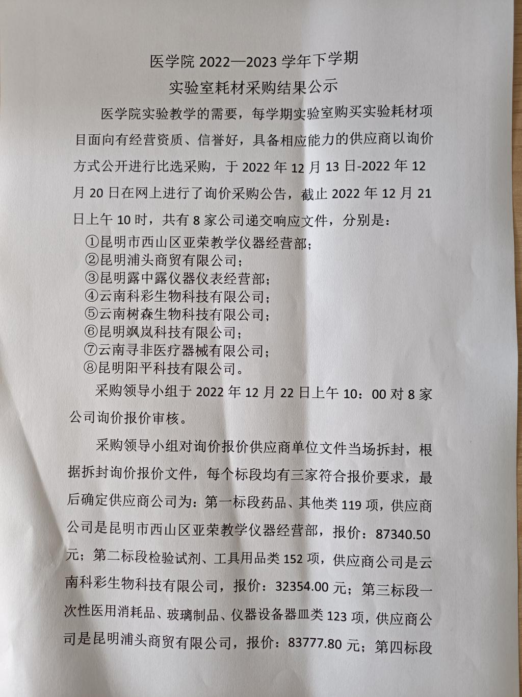 2026年世界杯官网2022-2023学年下学期实验室耗材采购结果公示