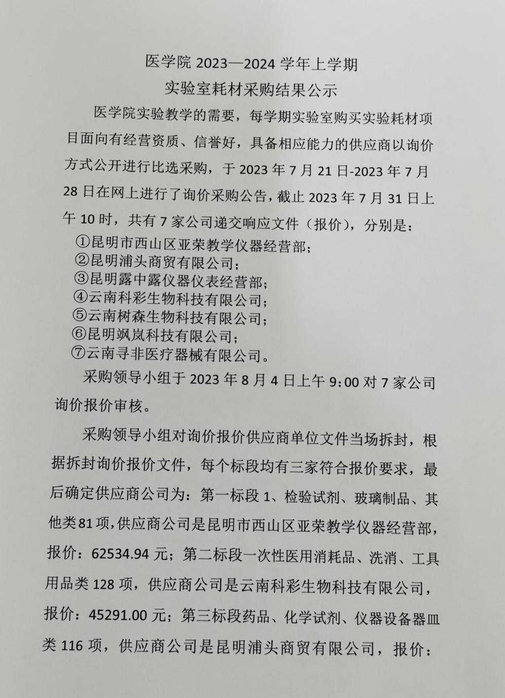2026年世界杯官网2023-2024学年上学期实验耗材采购结果公示
