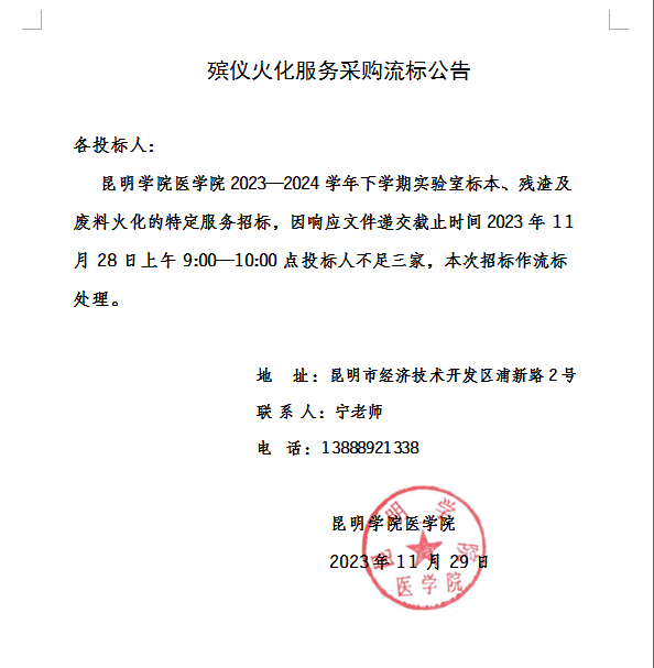 2026年世界杯官网殡仪火化服务采购流标公告