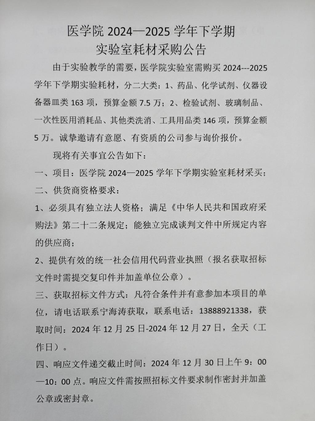 2026年世界杯官网2024-2025学年下学期实验室耗材采购公告