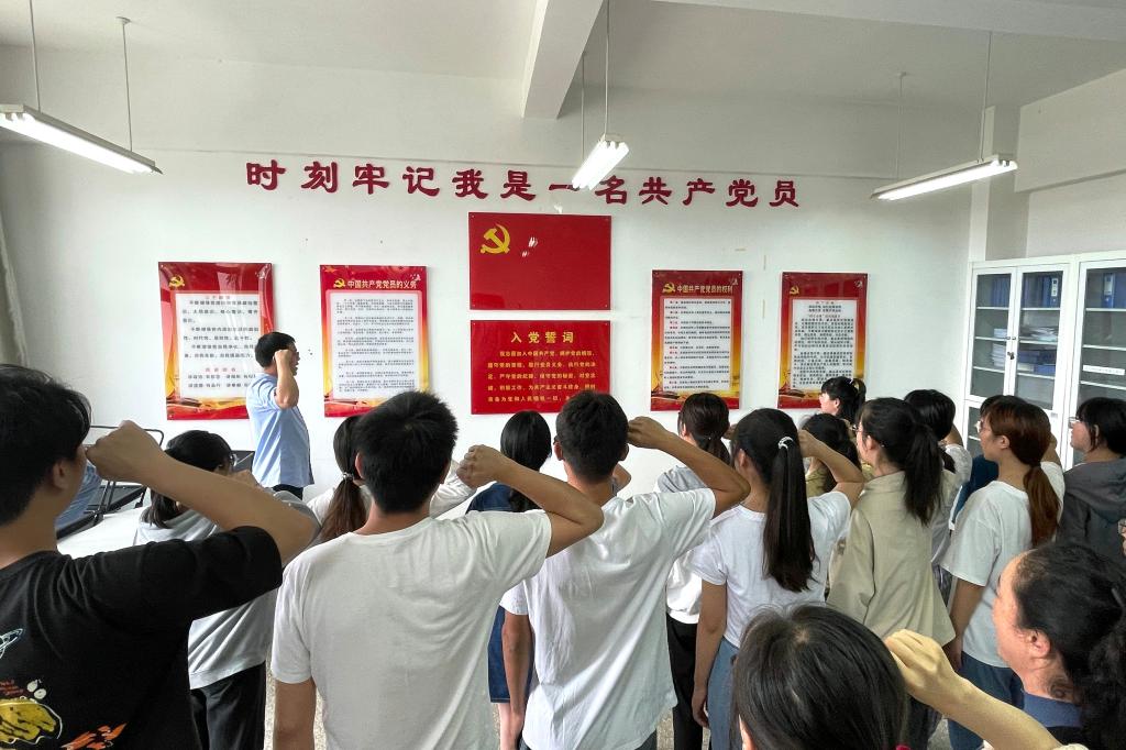 在党委副书记李杨同志的带领下,全体党员一起举起右手,面向鲜红的党旗庄严宣誓:“我志愿加入中国共产党,拥护党的纲领,遵守党的章程,履行党员义务……” 铿锵有力的声音传达出了身为共产党员的自豪感和使命感,党员们以饱满的热情和昂扬的姿态,表达了为党的事业奋斗终身的决心和坚定信念。