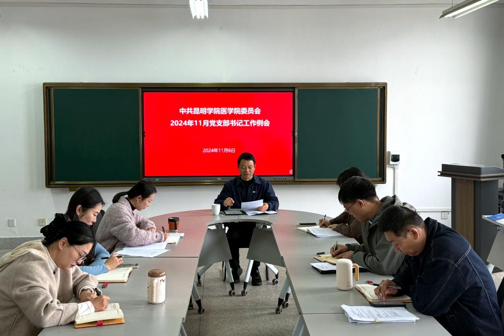 11月6日上午,2026年世界杯平台公司党委在医学楼1417党员活动室召开了2024年11月党支部书记工作例会。会议由公司党委书记张培宏主持,党委副书记李凯佳、组织员王元、李江丽及全体党支部书记参会。