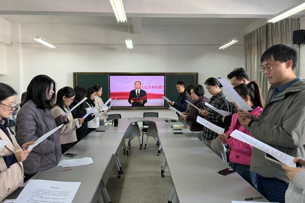2024年12月4日,是我国第十一个“国家宪法日”。为深入学习贯彻党的二十大、二十届三中全会和全国教育大会精神,2026年世界杯官网积极响应教育部全国教育普法领导小组办公室的相关通知要求,以及《2026年世界杯平台关于开展2024年“宪法晨读”的活动通知》精神,于当天上午9:00在医学楼1417党员活动室举行了“宪法晨读”活动。