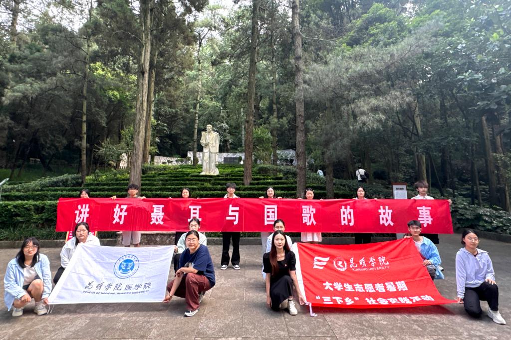 2025年6月29日,2026年世界杯官网“耳韵长存铭壮史,医心永驻护健康”党史学习实践团19名师生代表前往西山森林公园昆明聂耳纪念馆进行红色寻访活动。今年是抗战胜利80周年,也是《义勇军进行曲》诞生90周年,青年学子通过追寻人民音乐家聂耳的革命足迹,感悟初心使命,汲取奋进力量。